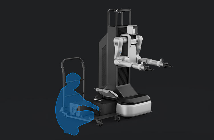 四輪四驅(qū),支持零回轉(zhuǎn)半徑與蟹行,腰部可升降與俯仰,22自由度全方位覆蓋人類作業(yè)空間。